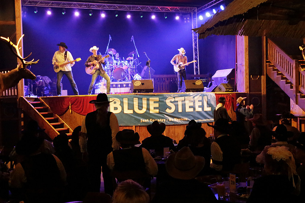 Pünktlich um 20:30 Uhr ging dann der Vorhang auf. Ein Blick ins Publikum - der Saal ist gut gefüllt. Das hätten wir echt nicht gedacht. Finale plus schlechtes Wetter, aber das ist eben Pullman City.