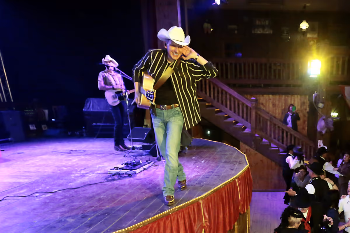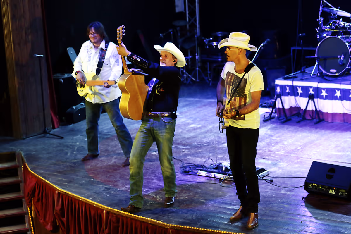 Schnell noch in die Cowboy Sachen geschlüpft und pünktlich um 20:30 Uhr ging der rote Samtvorhang für die erste Runde auf.