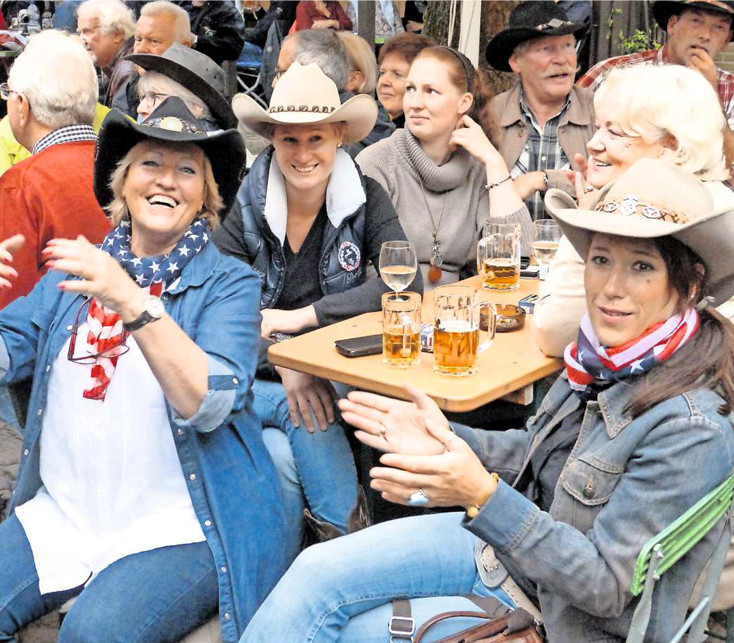 Drei Stunden dauert der Abend insgesamt. Wie stets bei Veranstaltungen der Kulturgemeinschaft sind Bühne und Tische hübsch geschmückt. Diesmal sind Ingrid Maske und Brigitte Dahme zuständig für die Dekorationen. Die Nachbarinnen haben ihre guten Beziehungen zum Heiseder Reiterhof Blume genutzt und Sattel, Zaumzeug, alte Lederstiefel und einen Strohballen als Bühnendeko ergattert. Auf den Tischen drapieren sie neben Blumengestecken und Spitzpaprika Erdnüsse, Exportschlager aus den USA. Ein in jeder Hinsicht runder Abend.